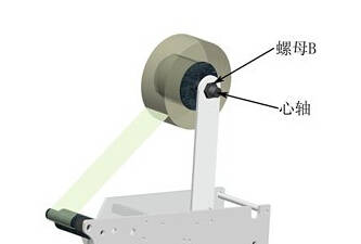 如果胶带不在箱子的中心线上,请参照下图进行调整:松开螺母B ,然后用螺丝刀调整心轴,从而可以调整胶带位置。